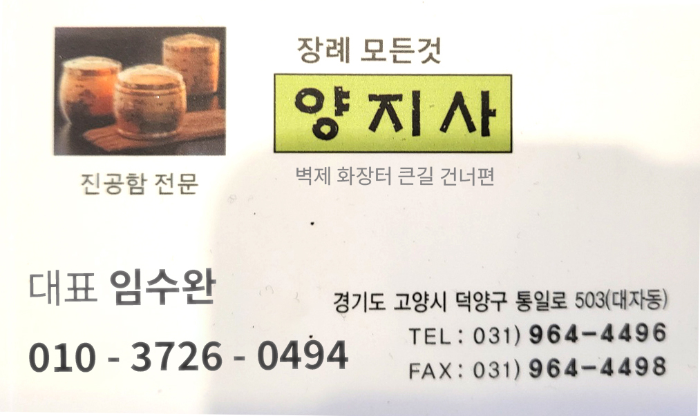 저희 아버지가 운영하시는 유골함 양지사는